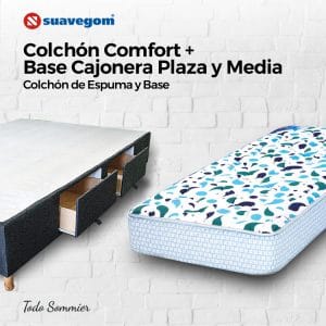Combo Sommier con Respaldo 1 Plaza de Espuma (80×190×28 para 110Kg) Flexigom Plata